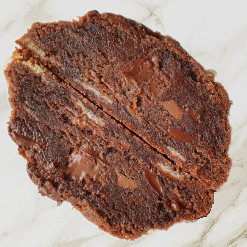 Triple chocolate chip cookie met witte, melk, en pure chocolade en gevuld met Nutella!